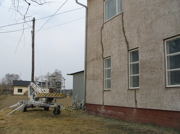 Ulkoseinä pestynä ja halkeamat paikattuina
